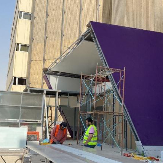 التصميم والعلامات التجارية - الهياكل الفولاذية والكسوة - اللافتات وإرشادات الطريق - أكشاك المعارض والديكورات الداخلية - الطباعة الرقمية وحلول الصمام الثنائي الباعث للضوء.